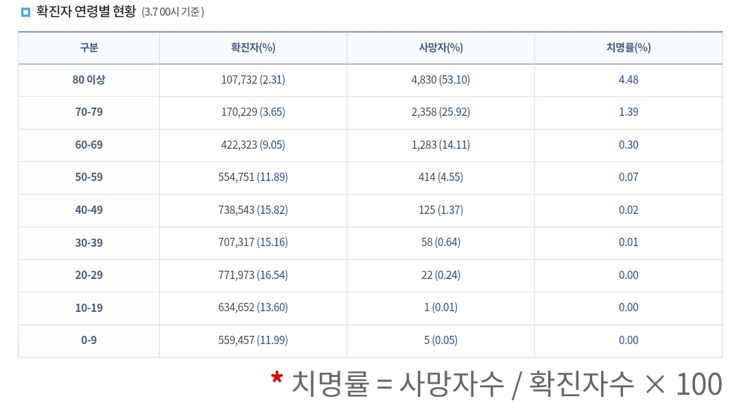 누적 발생률은 델타까지와 오미크론이후가 섞여 있으므로 읽을 때 주의(다음부터 발췌할때 뺄까)