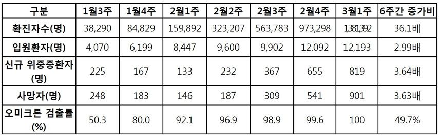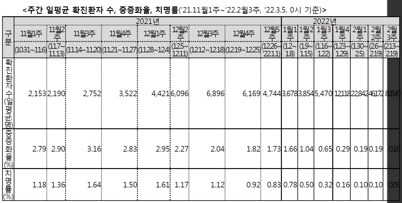 | 코로나19(2022.3.6), 주간 주요 방역지표 동향 분석(2.27.~3.5.) ★ (0) | 2022.03.06 |