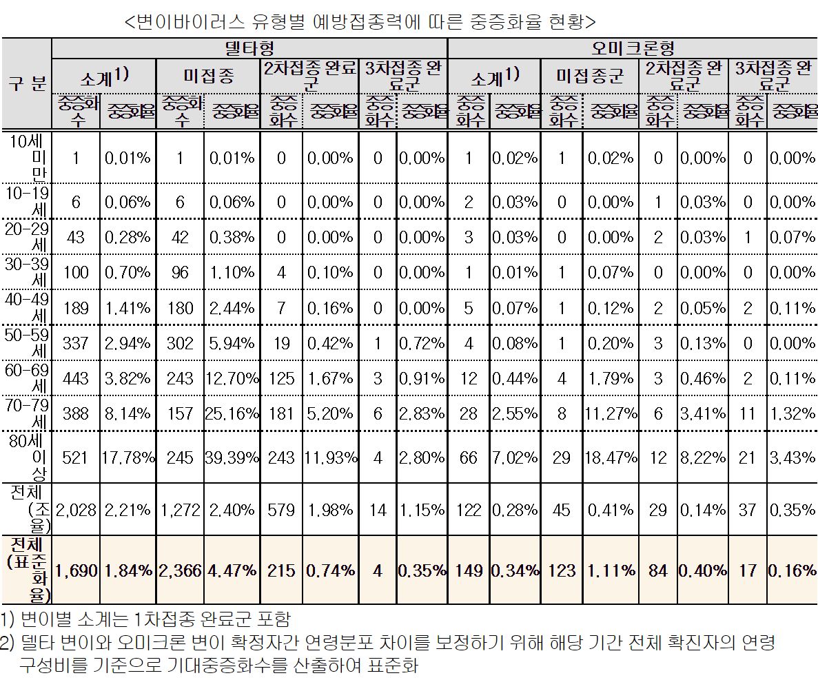 코로나 변이주별 증상악화 예방효과는 오미크론도 비슷