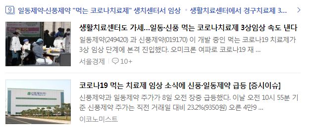 한편, 생활치료센터에서 국내산 경구치료제 임상 3상을 시작한 모양입니다.