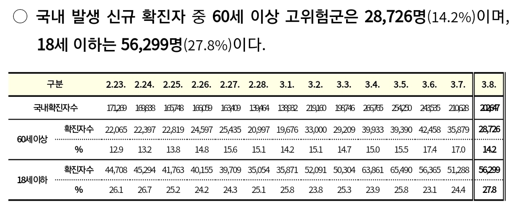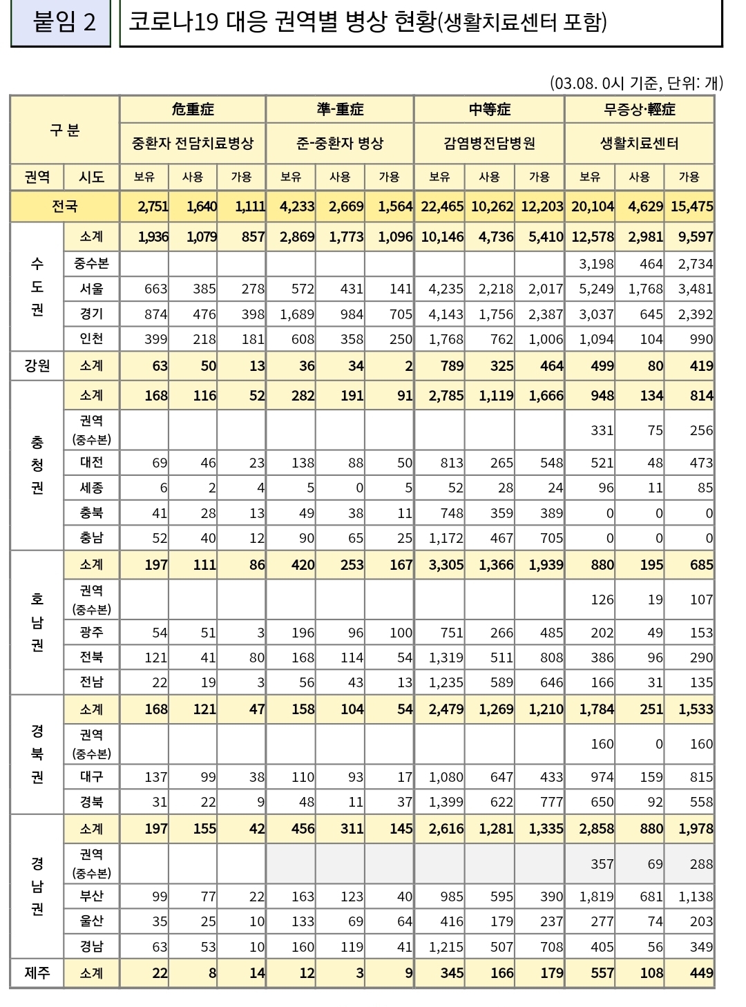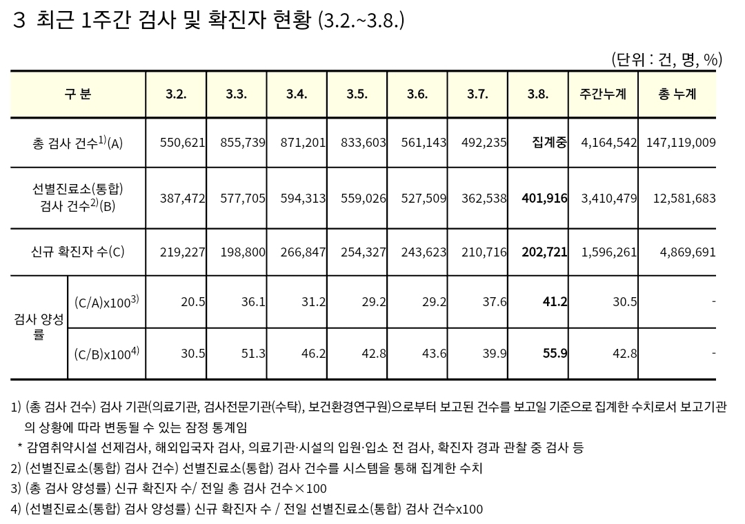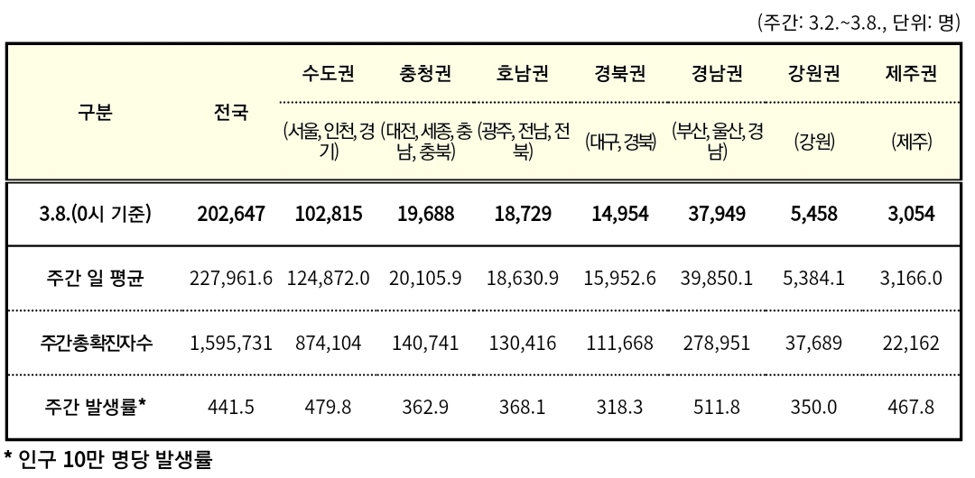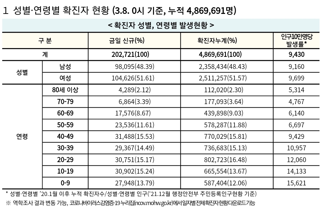 코로나19집계(2022.3.8. 0시기준): 확진자 +20.3만, 사망자 +186명, 중환자실 가동률 ~60%, 재택치료 116만(집중 18만) 본문