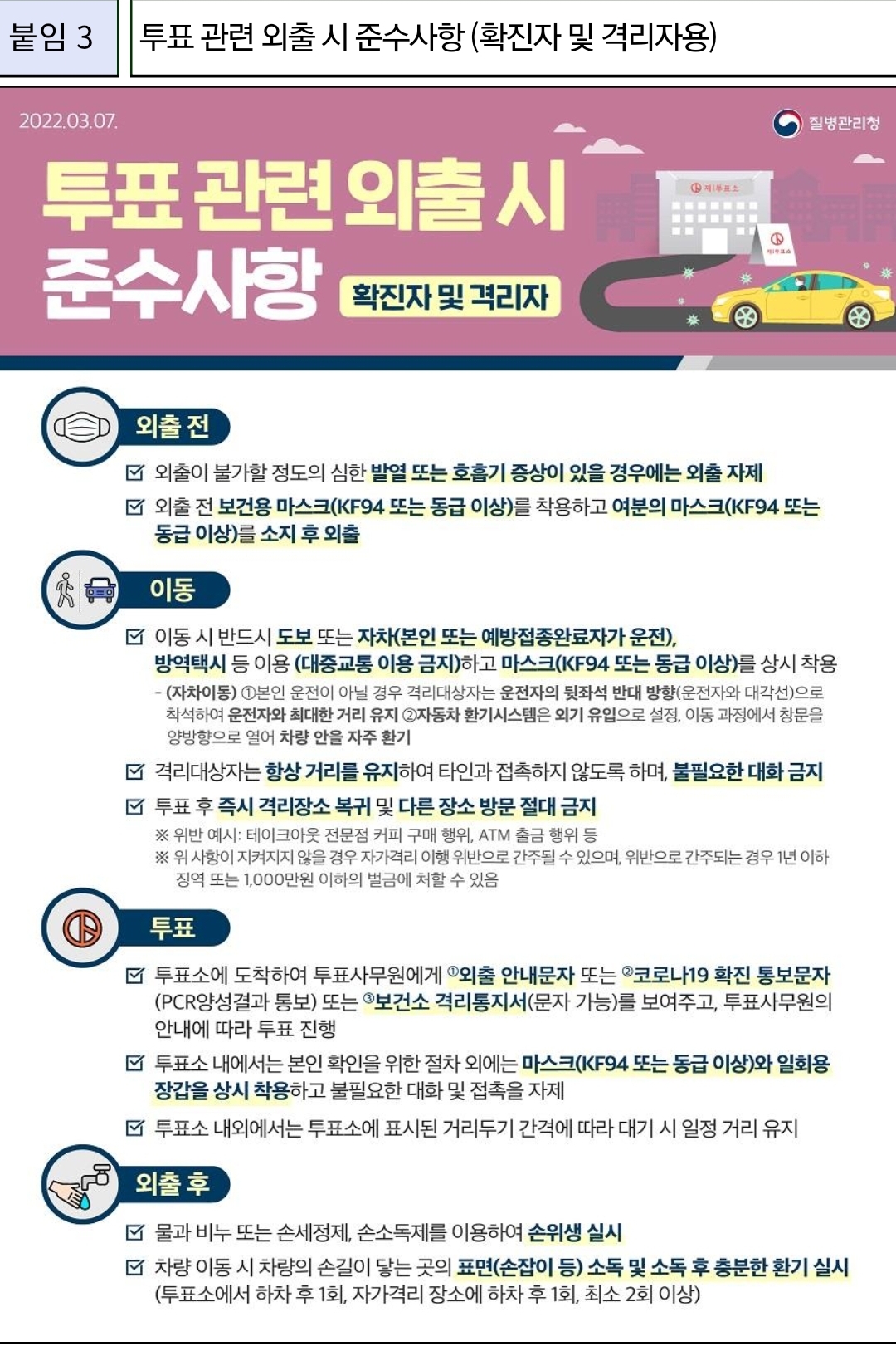 투표관련 외출시 준수사항