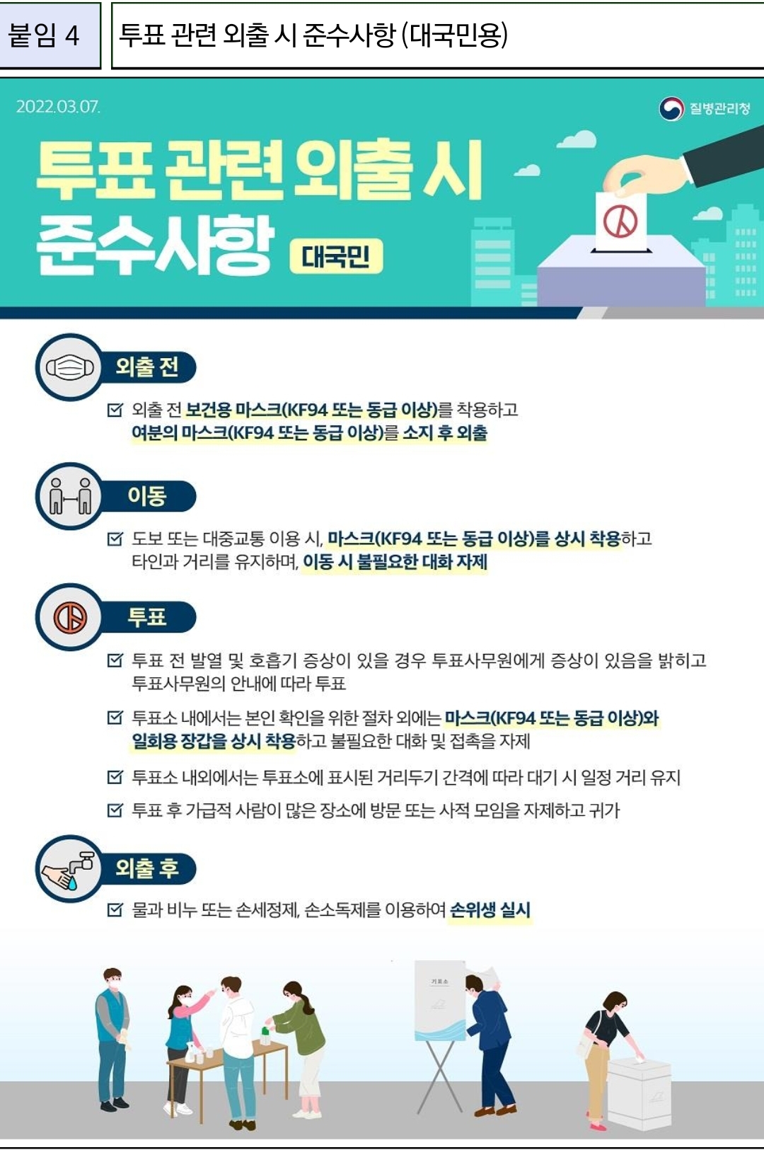 코로나19, 투표, 재택치료, 격리제도 등 2022.3.8일자 안내문 본문