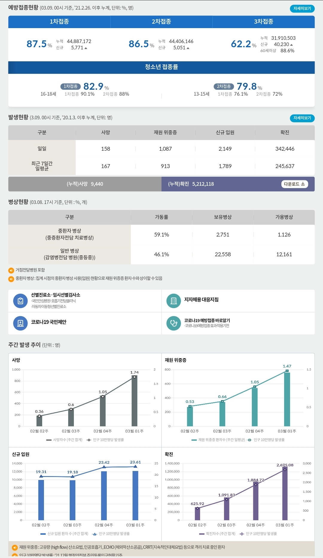 | 코로나19(2022.3.10) 이상반응 신고현황 주간 분석결과 (53주차), 예방접종률 등 (0) | 2022.03.10 |