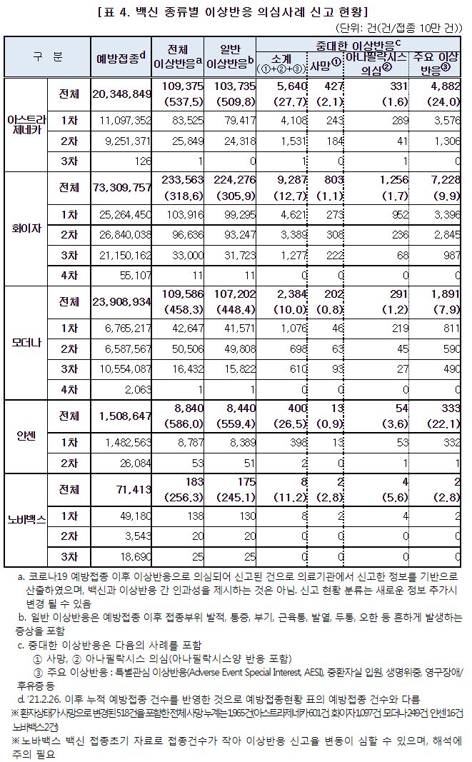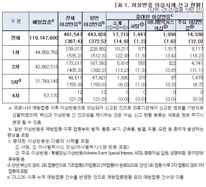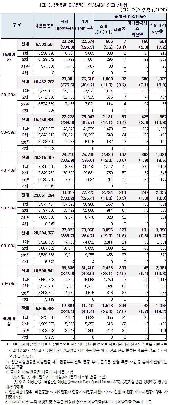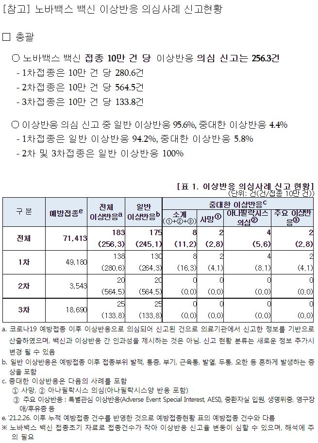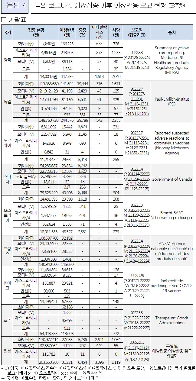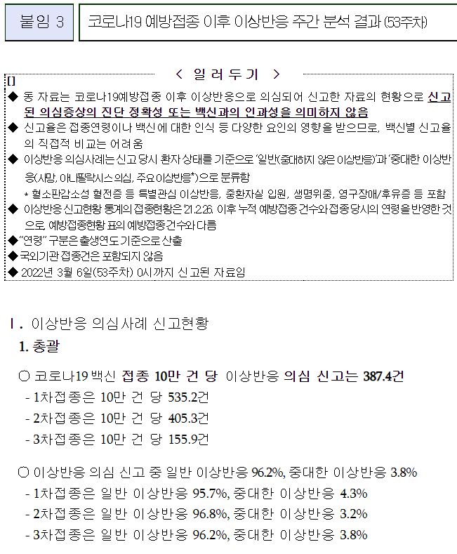 코로나19(2022.3.10) 이상반응 신고현황 주간 분석결과 (53주차), 예방접종률 등 본문