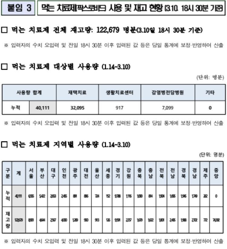 먹는 코로나19 치료제 - 팍스로비드 사용량 및 재고량