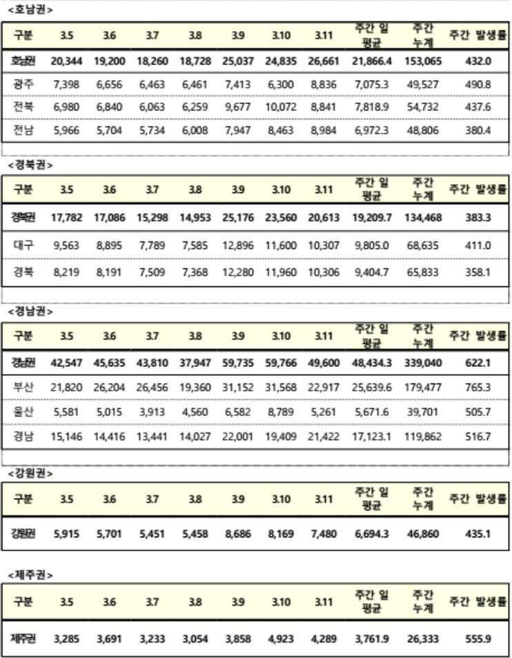 유행추이 및 지역별 상황