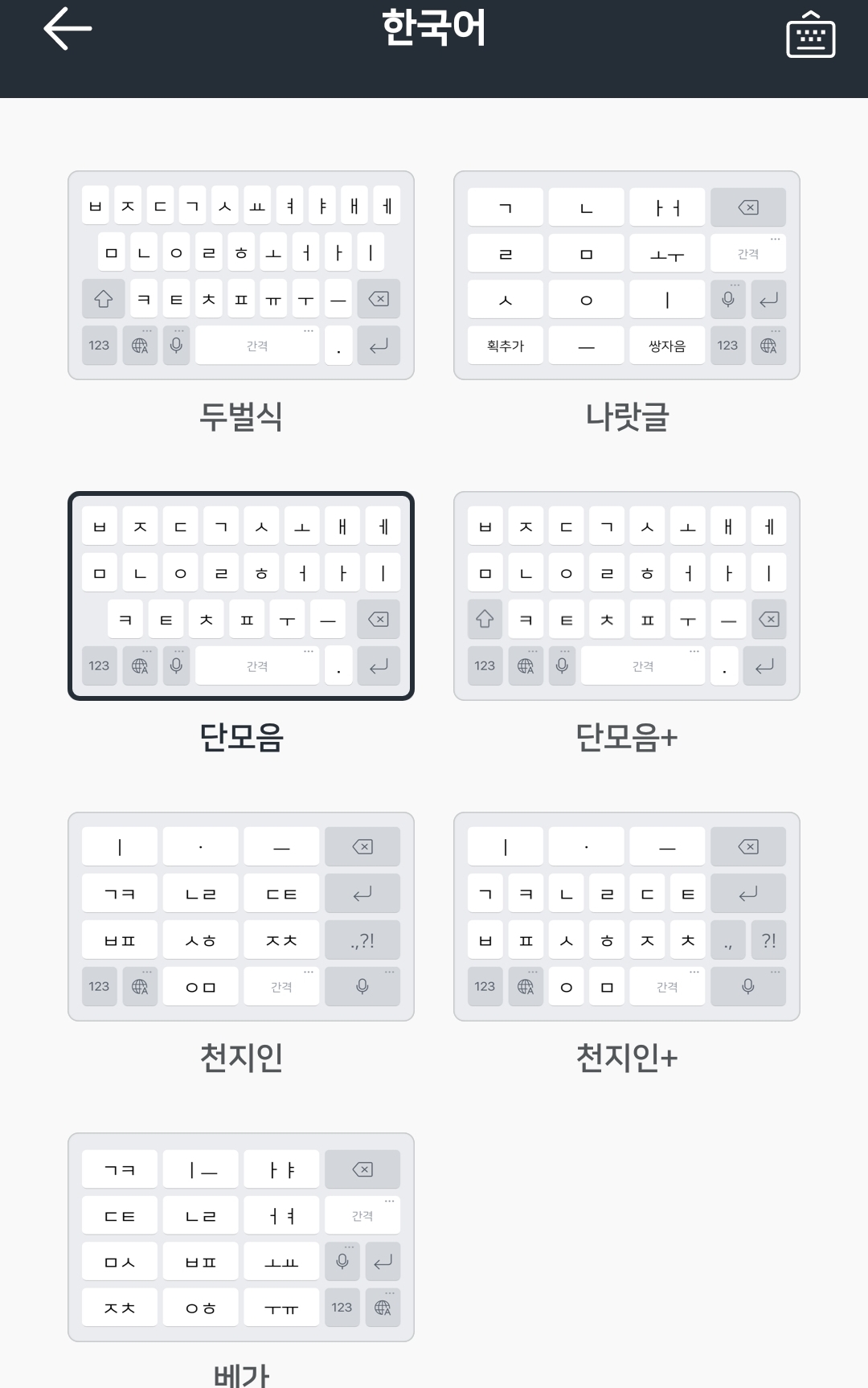 단모음+는 쌍모음, 쌍자음을 일부는 연타로 입력, 일부는 쉬프트키로 입력인데 익숙해지려면 좀 걸리겠더군요.