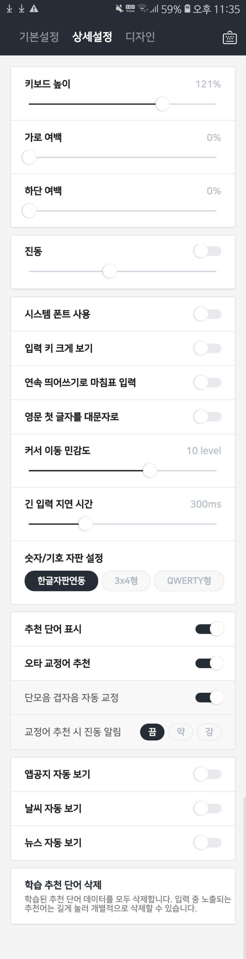 스마트/구글 기본 단모음키보드 사용중이라면, 연타간격은 지정해야할지도.. 디폴트값은 미묘하게 어긋날 때가 있습니다. 익숙해지면 그만이지만.