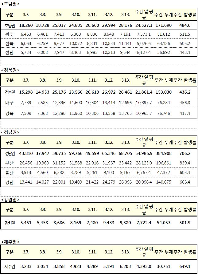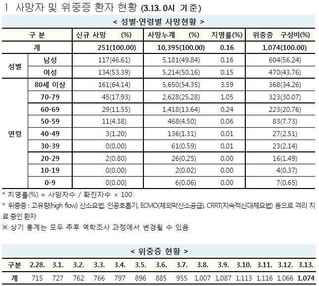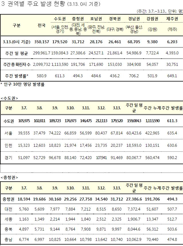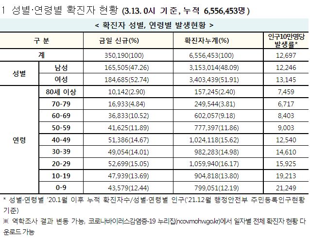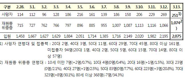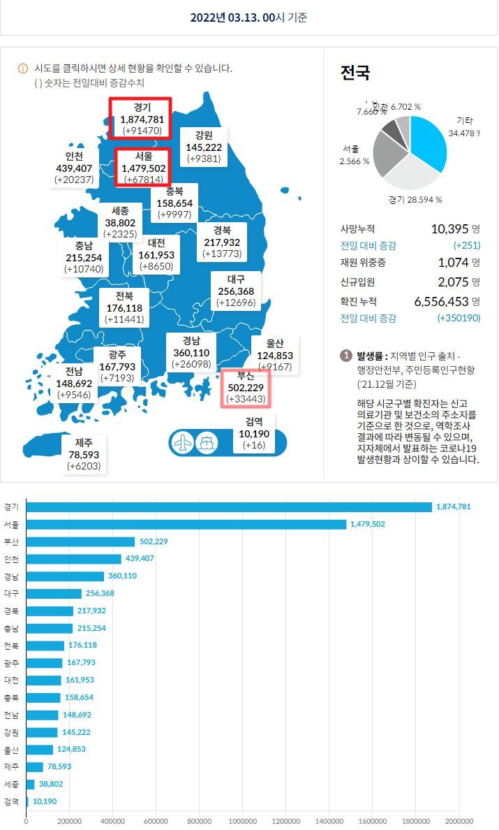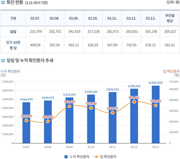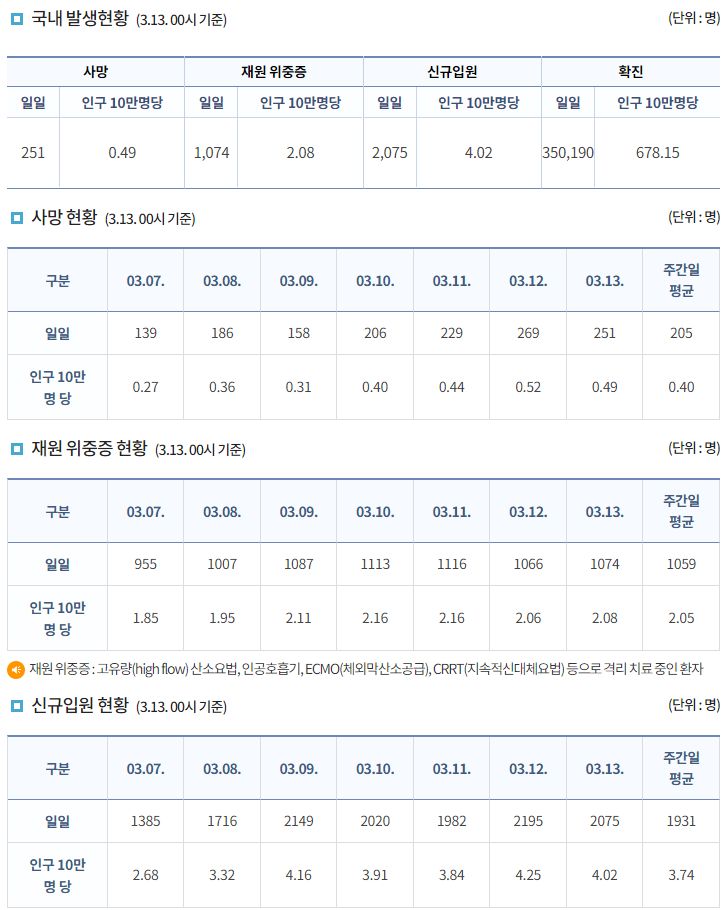 코로나19집계(2022.3.13. 0시기준): 확진 +30만, 사망 +251, 중환자병상가동률 67%, 재택 157만(집중 24만) 본문