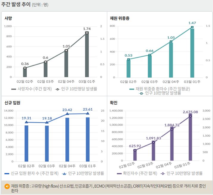 사망자, 위중증 환자, 재택치료자, 병상가동률