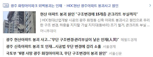 HDC현대산업개발 광주광역시 화정아이파크 아파트 붕괴사건, 조사 결과를 담은 기사가 나왔군요. 본문