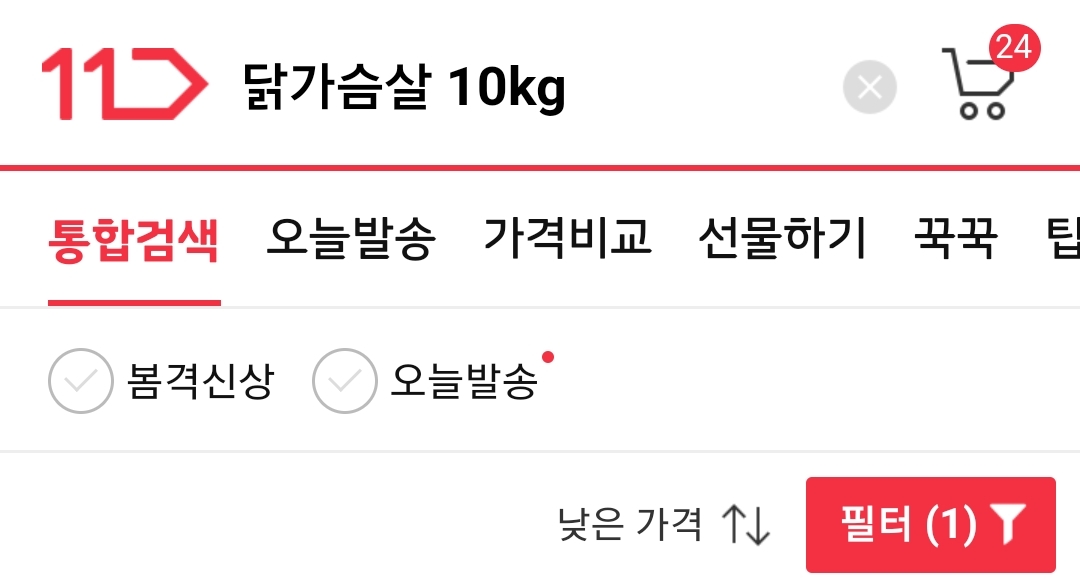 예를 들어, "닭가슴살 10kg"을 검색하고,