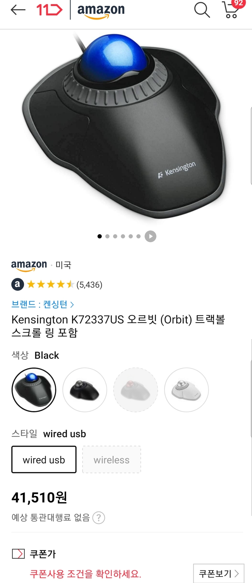 (11번가-아마존) 켄싱톤 유선 트랙볼 K72337US, K75327WW (~3.2만원/우주패스) 본문