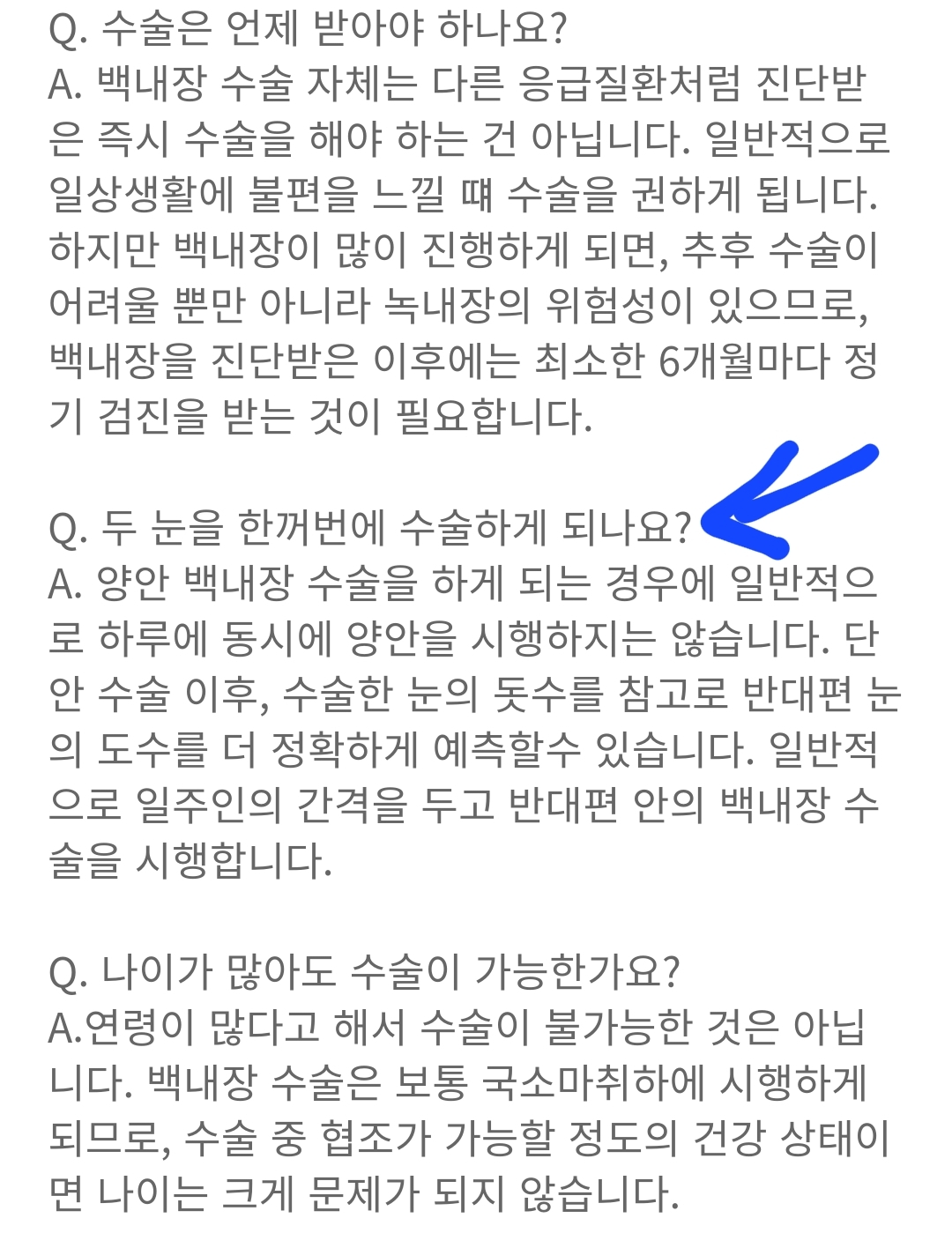 하지만 요즘은 양안 동시 수술도 꽤 하는 모양인데,