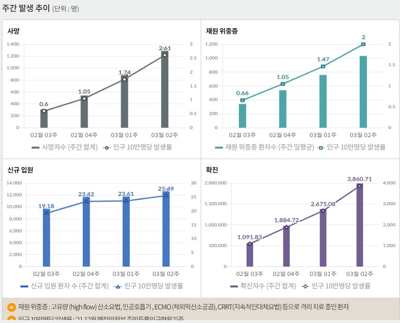 사망자, 위중증 환자, 병실가동률, 재택치료