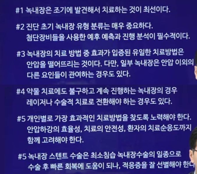 ㅡ (마치 간질환이나 신장질환같이) 시신경이 거의 파괴됐을 때쯤 돼야 불편을 못 참고 내원하는 환자가 많다. 정기적인 눈검진/녹내장검사가 필요한 이유.