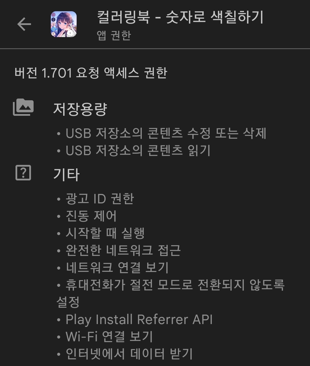 권한요구는 많이 하는 편. 더 적게 요구하는 게임이 있는지는 모르겠네요. 이 종류 다른 앱을 아직 깔아보지 않았습니다.