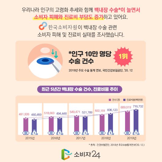 백내장 수술 전 알아야 할 상식, 수술비, 수술위험관련 기사와 보도자료/:/ 국민건강보험공단 2020년 수술통계연보 본문