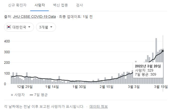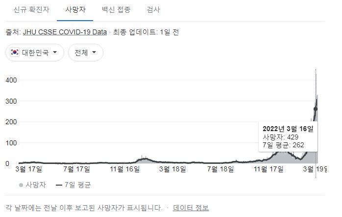 오미크론 + 거리두기푼 다음 생긴 사망자가, 그 전 전 기간동안 사망자 합계보다 더 많습니다. 그리고 유행은 아직 끝나지 않았습니다.