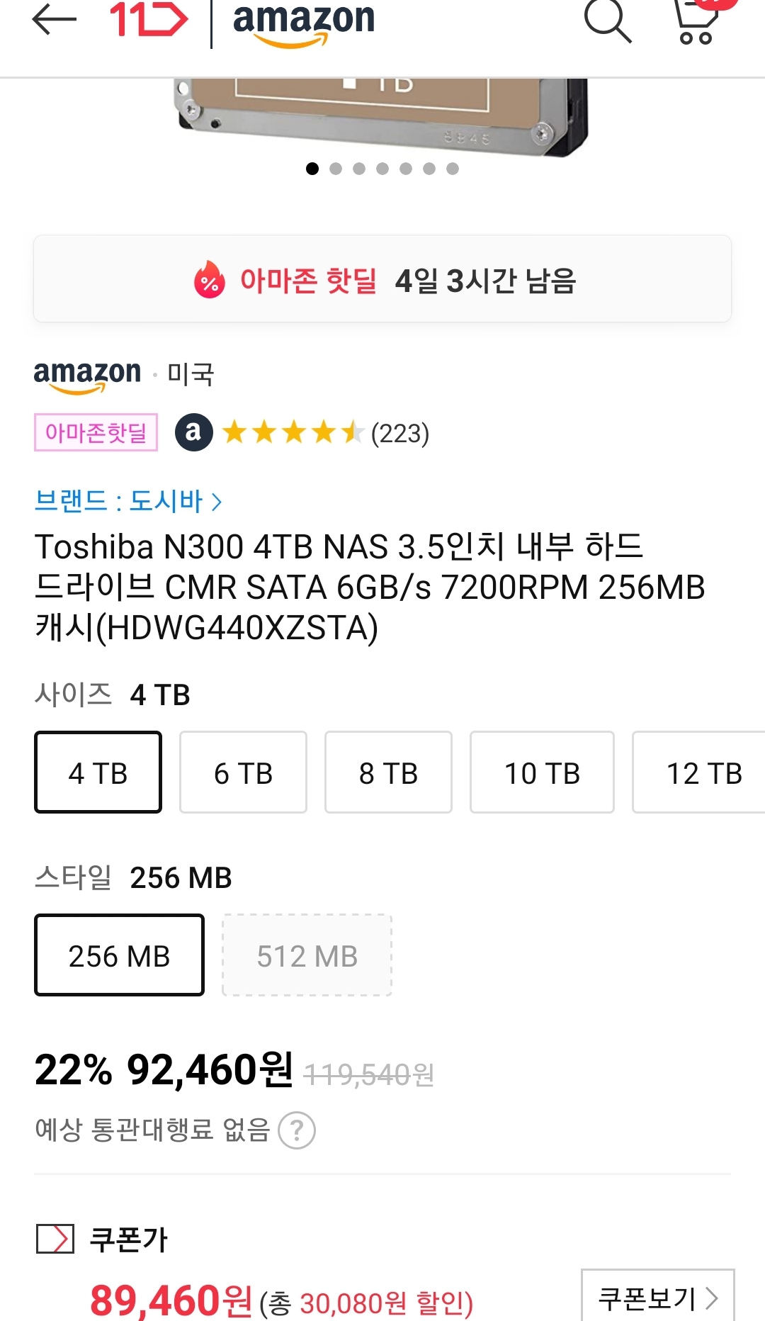 ※웨스턴 디지털 4TB Red plus CMR 128MB 하드디스크가 우주패스기준 8.9만원입니다. 세일가는 아니지만 일본브랜드가 싫은 분들은 이것도 있다고 적어둡니다. 급하지 않으면 다음 달 아마존위크때라도 노려보세요.