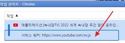 그리고, 열려 있는 동영상재생 URL탭말고 유튜브 작업에 관한 목록을 아무거나 클릭합니다. 아래에서는 서비스워커라고 되어 있는 것.