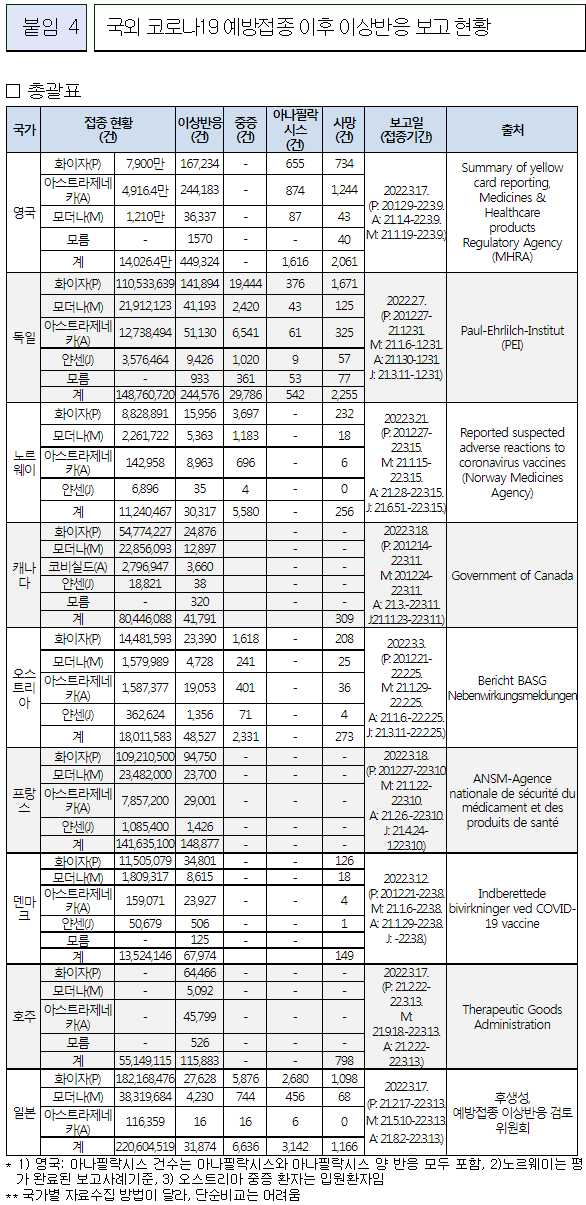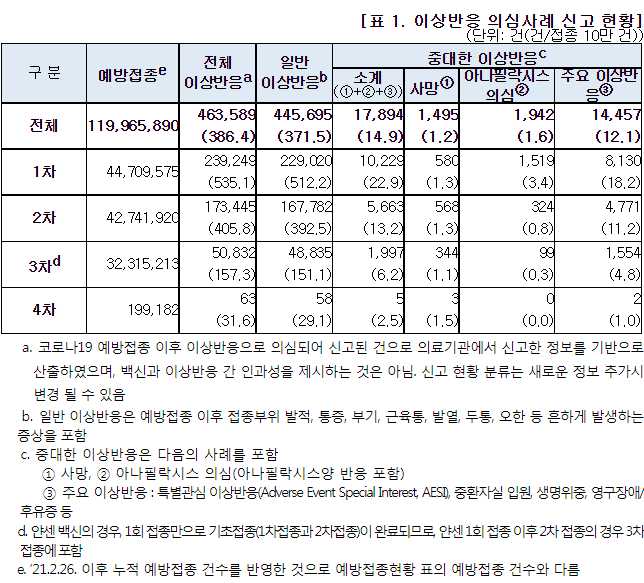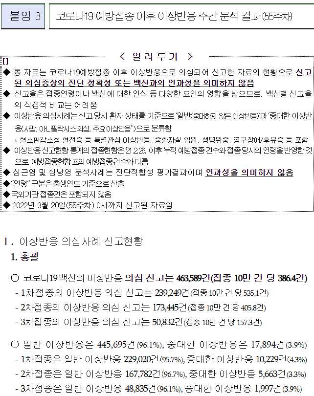 코로나19(2022.3.24) 예방접종 이후 이상반응 주간 분석 결과(55주차)/:/ 그 외 몇 가지 본문