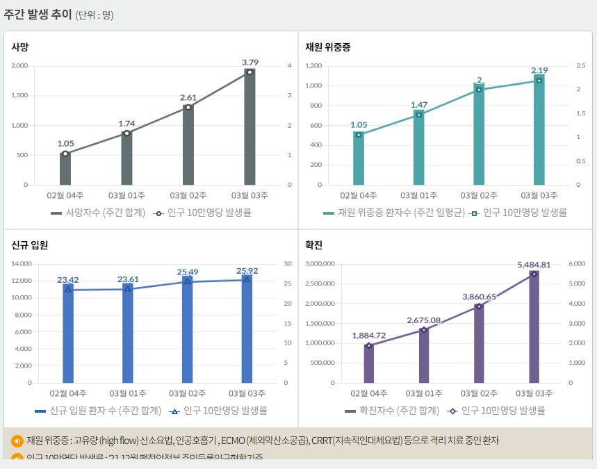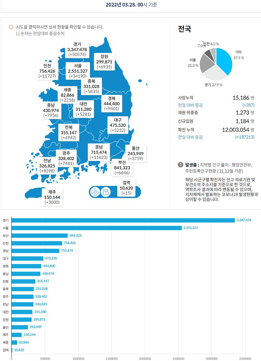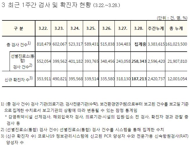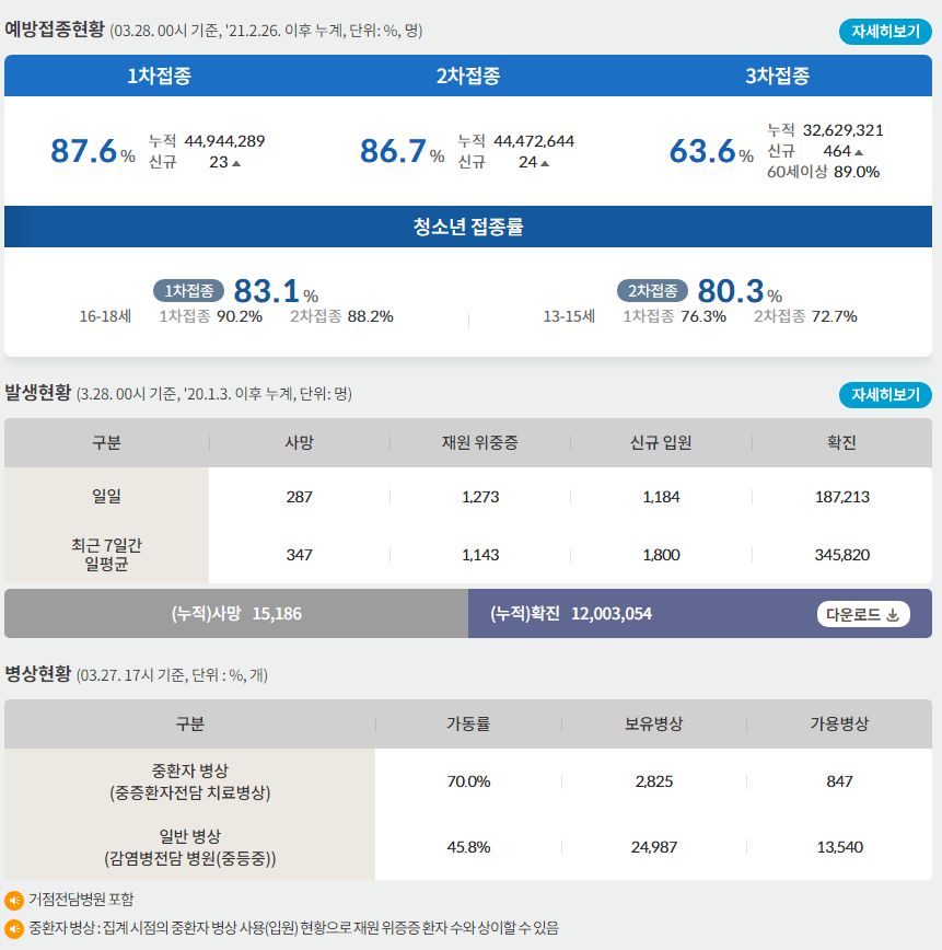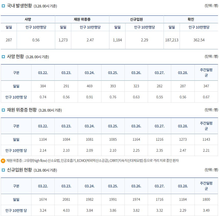 코로나19집계(2022.3.28. 0시기준): 확진 +19만★, 사망 +287명, 중환자실가동률 70%, 재택 ???만 (집중관리 ??만)/:/ 숨은 감염자 기사 본문