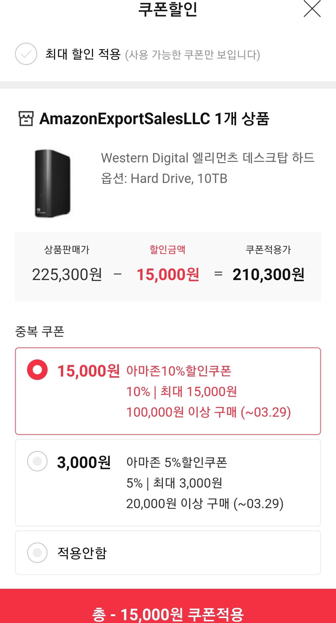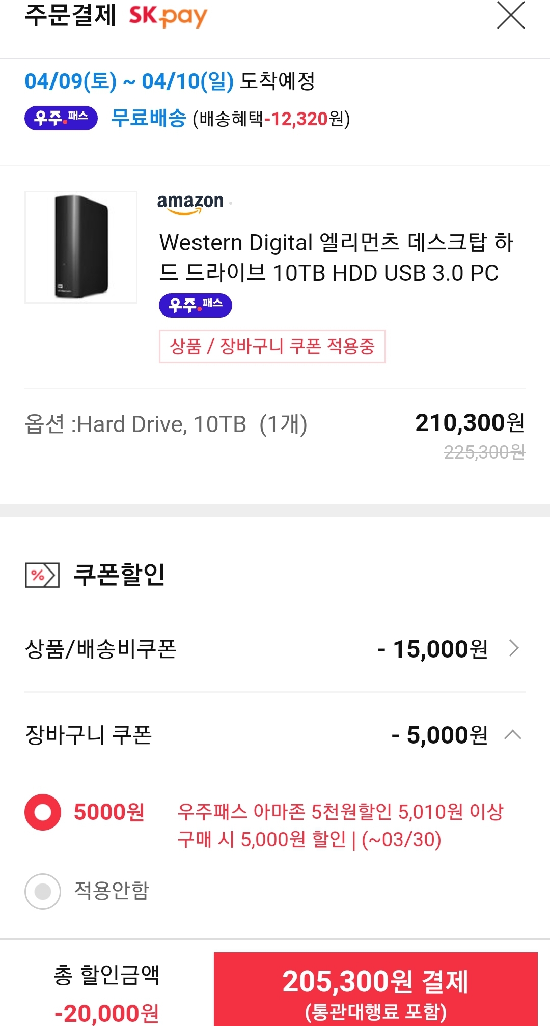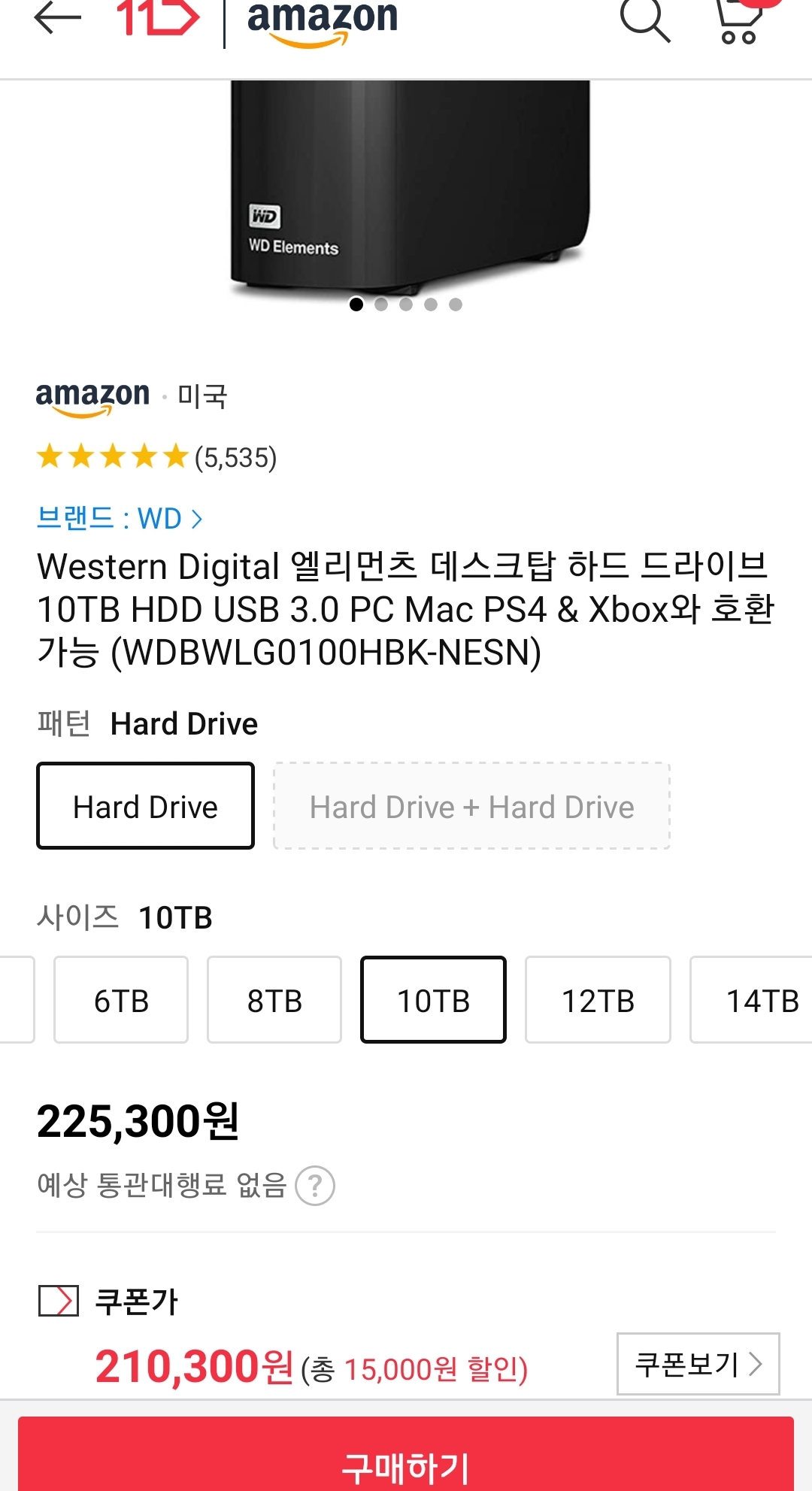 (11번가-아마존) WD 엘리먼츠 10TB 외장하드 (~20.5만원/우주패스) 본문