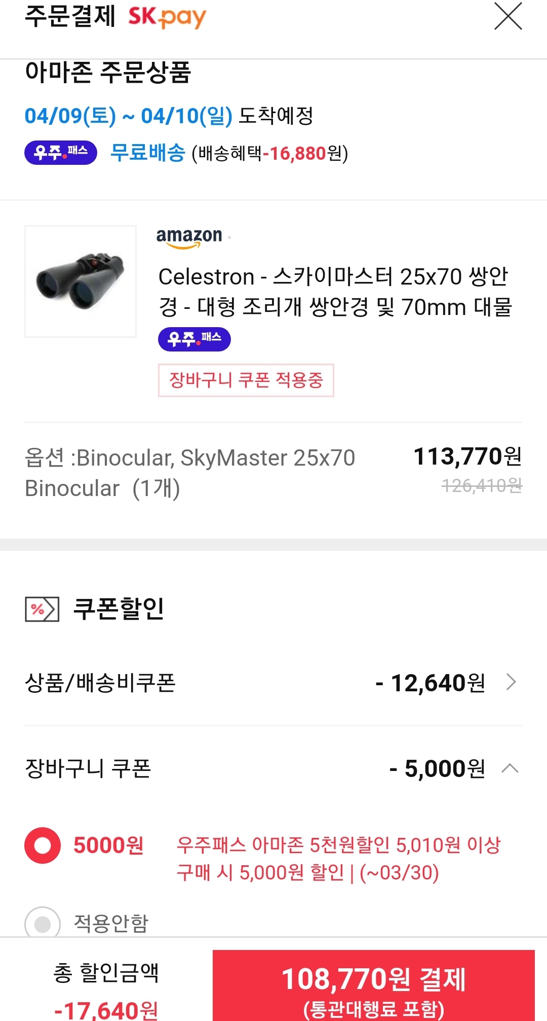 (11번가-아마존) 셀레스트론 25x70 쌍안경 (~10.9만원/우주패스) 본문
