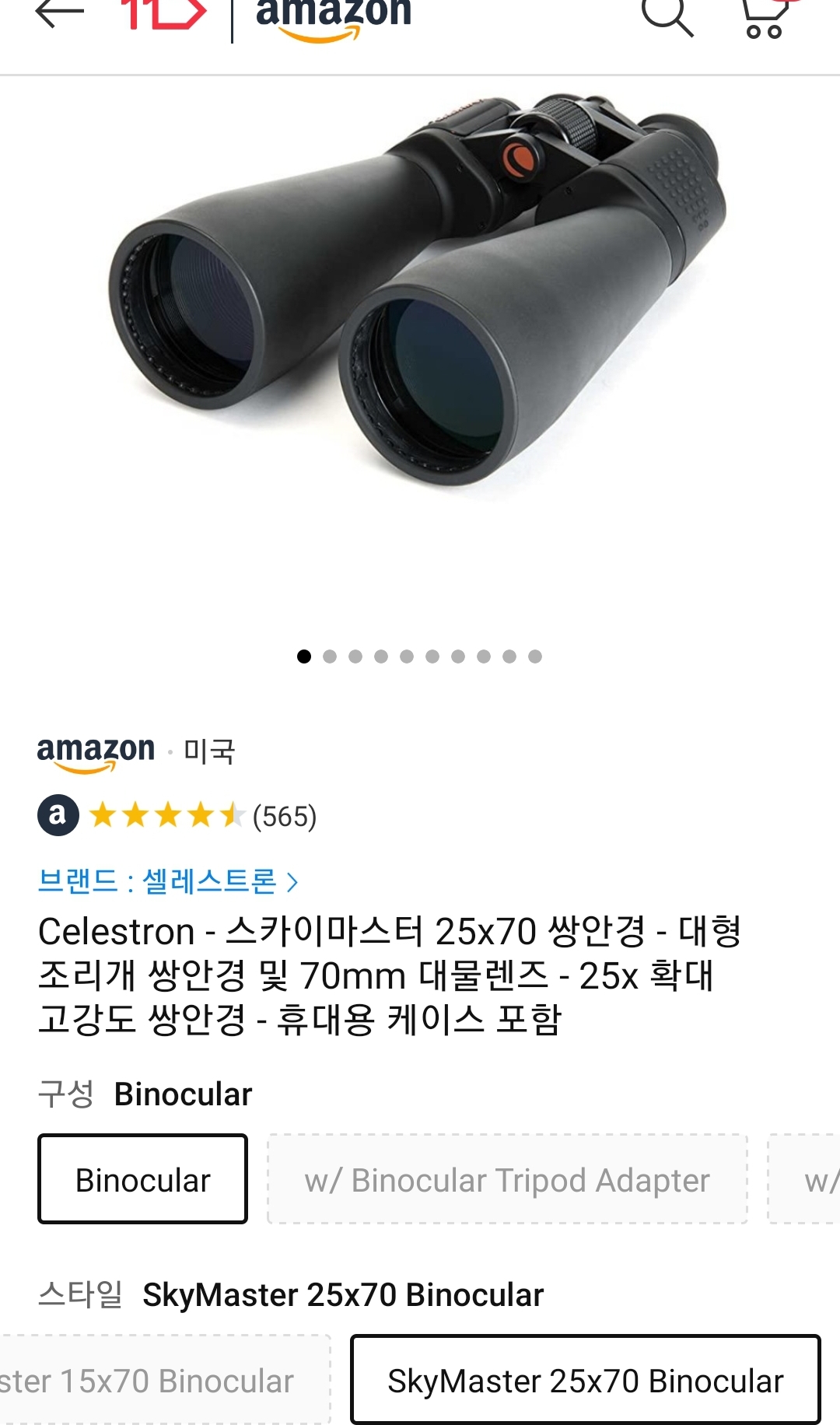 가성비 좋은 셀레스트론 스카이 마스터 25x70 쌍안경 (celestron skymaster 25x70)