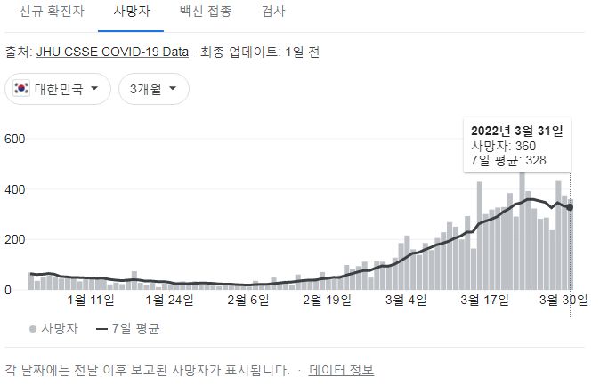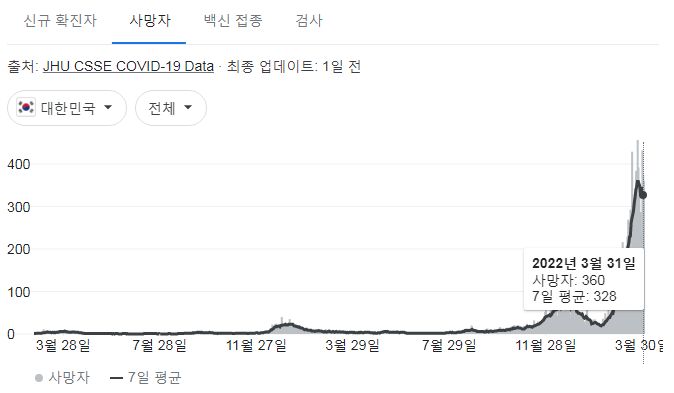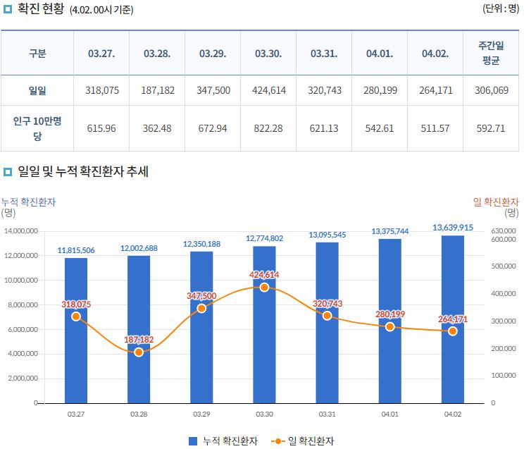 코로나19집계(2022.4.2. 0시기준): 확진 +26만, 사망 +339명, 중환자실가동률 63%, 재택치료 170만(집중관리 16만) 본문