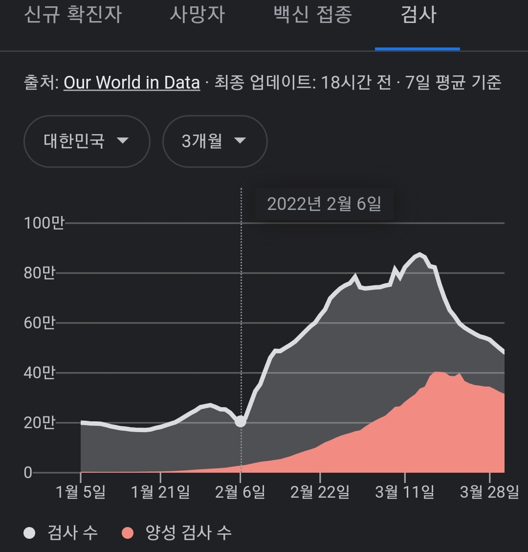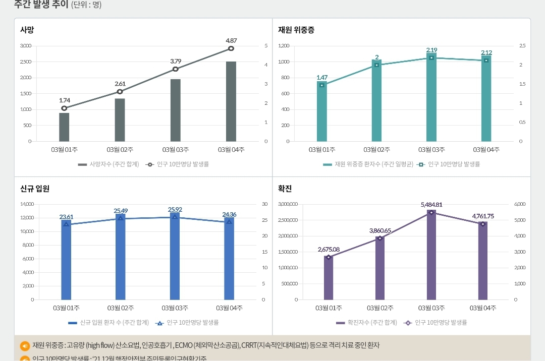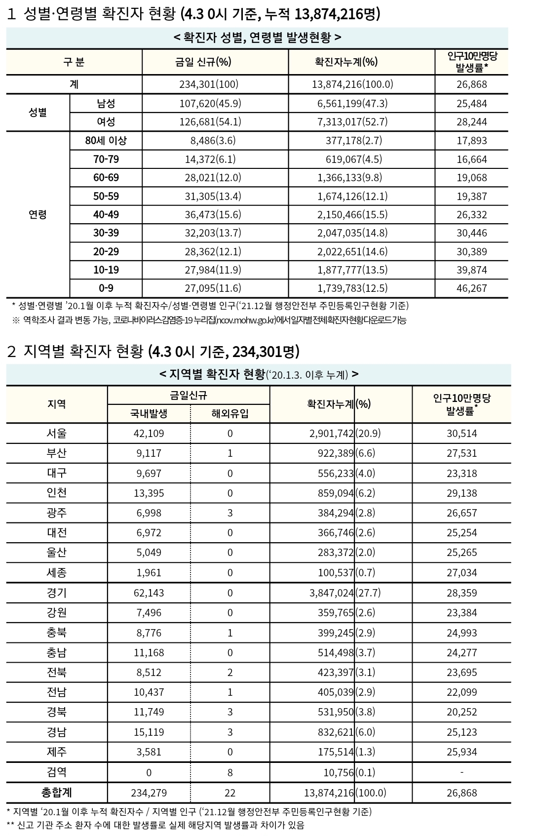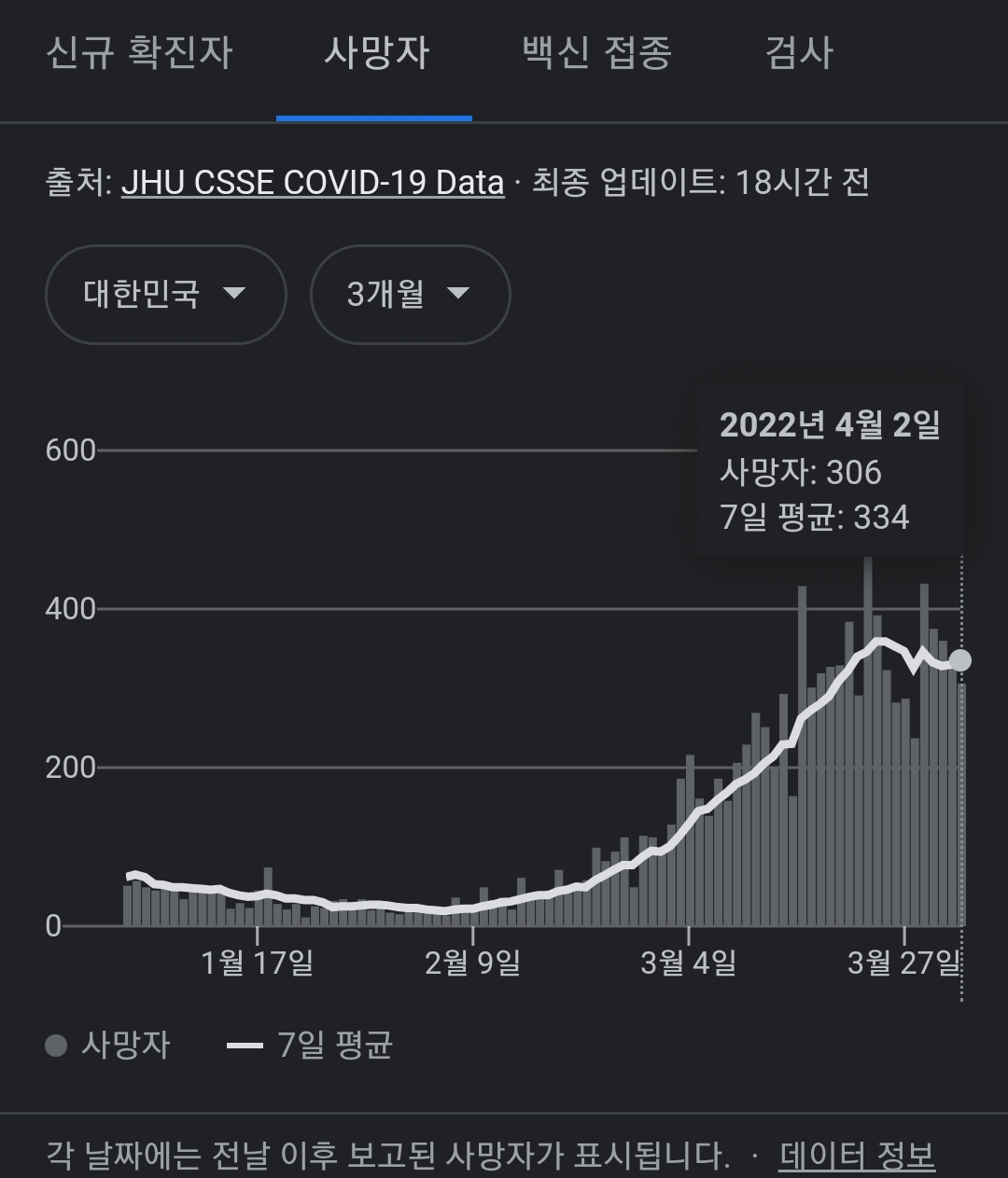 코로나19집계(2022.4.3. 0시기준): 확진 +23만, 사망 +306명, 중환자실가동률 67%, 재택치료 169만(집중 16만) 본문