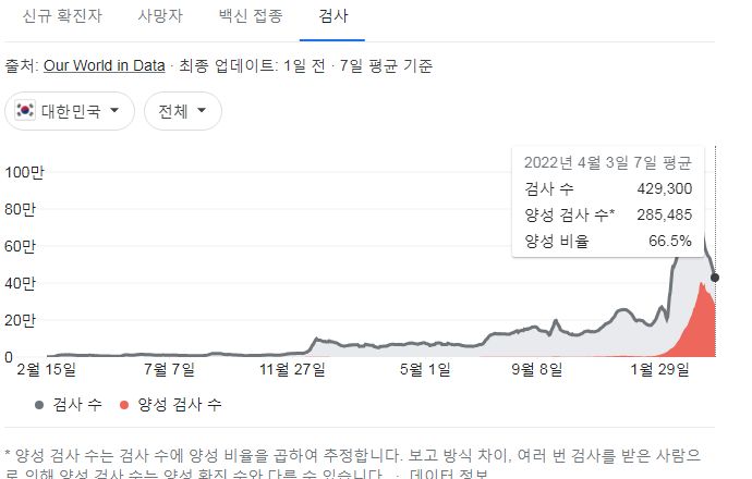 | 코로나19집계(2022.4.5. 0시기준): 확진 +27.4만, 사망 +209명, 중환자실가동률 65%, 재택치료 138만(집중관리 13만) (0) | 2022.04.05 |