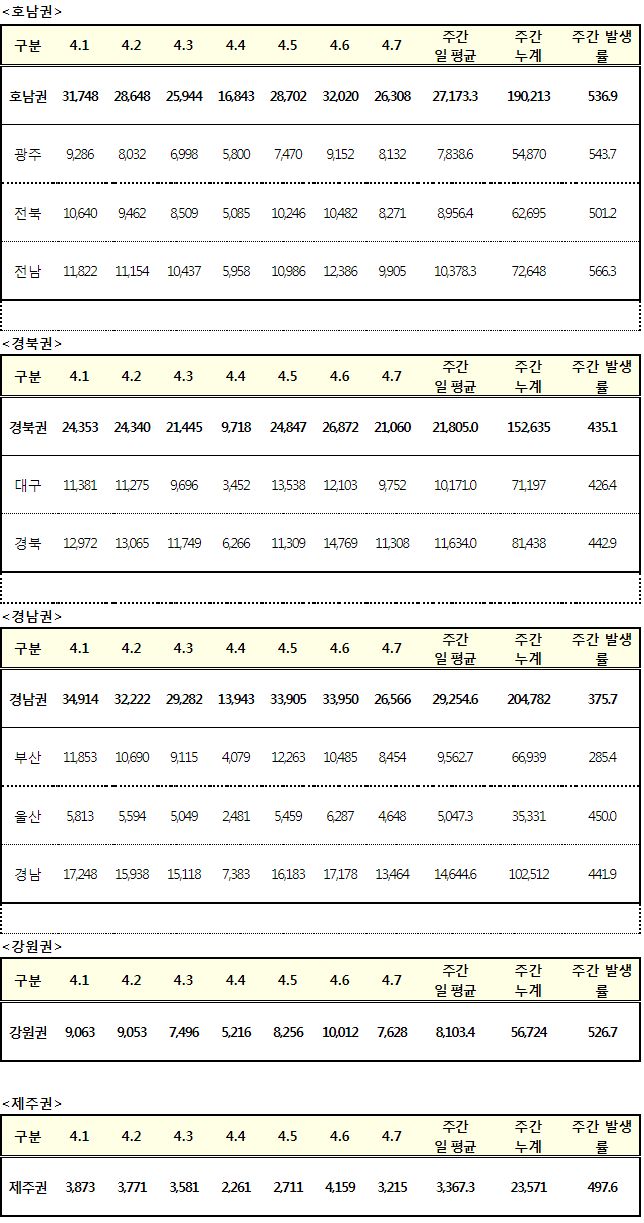 코로나19집계(2022.4.7. 0시기준): 확진 +22.5만, 사망자 +348명, 중환자실가동률 59%, 재택치료 131만(집중관리 12만) 본문