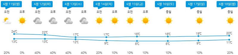 4월 중순 일기예보입니다.