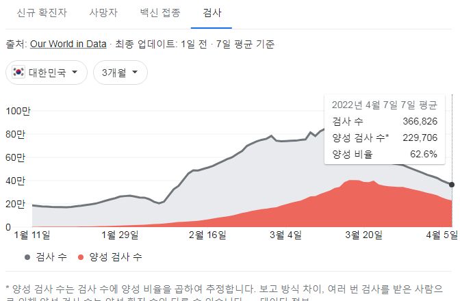 | 코로나19집계(2022.4.8. 0시기준): 확진 +23만, 사망자 +373명, 중환자실가동률 58%, 재택치료 128만(집중관리 12만)/:/ 보건소 신속항원검사 중단 (0) | 2022.04.08 |