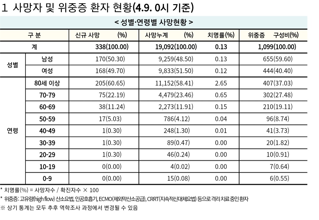 | 코로나19집계(2022.4.11. 0시기준): 확진 +9.1만, 사망 +258명, 중환자실 가동률 60%, 재택치료 121만(집중관리 10만) (0) | 2022.04.11 |