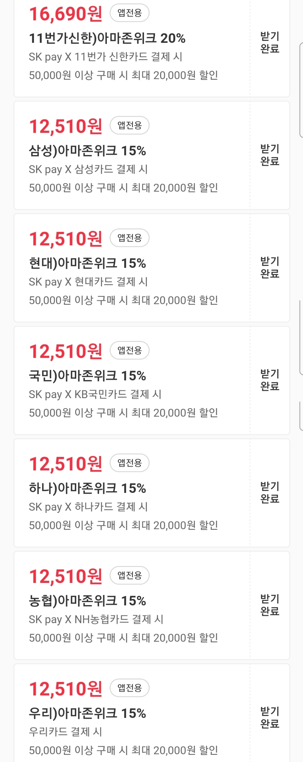 상품페이지에서 5대카드할인쿠폰, 그리고 결제페이지에서 아마존장바구니쿠폰. 11번가 신한카드가 있으면 몇 천 원 더 할인.