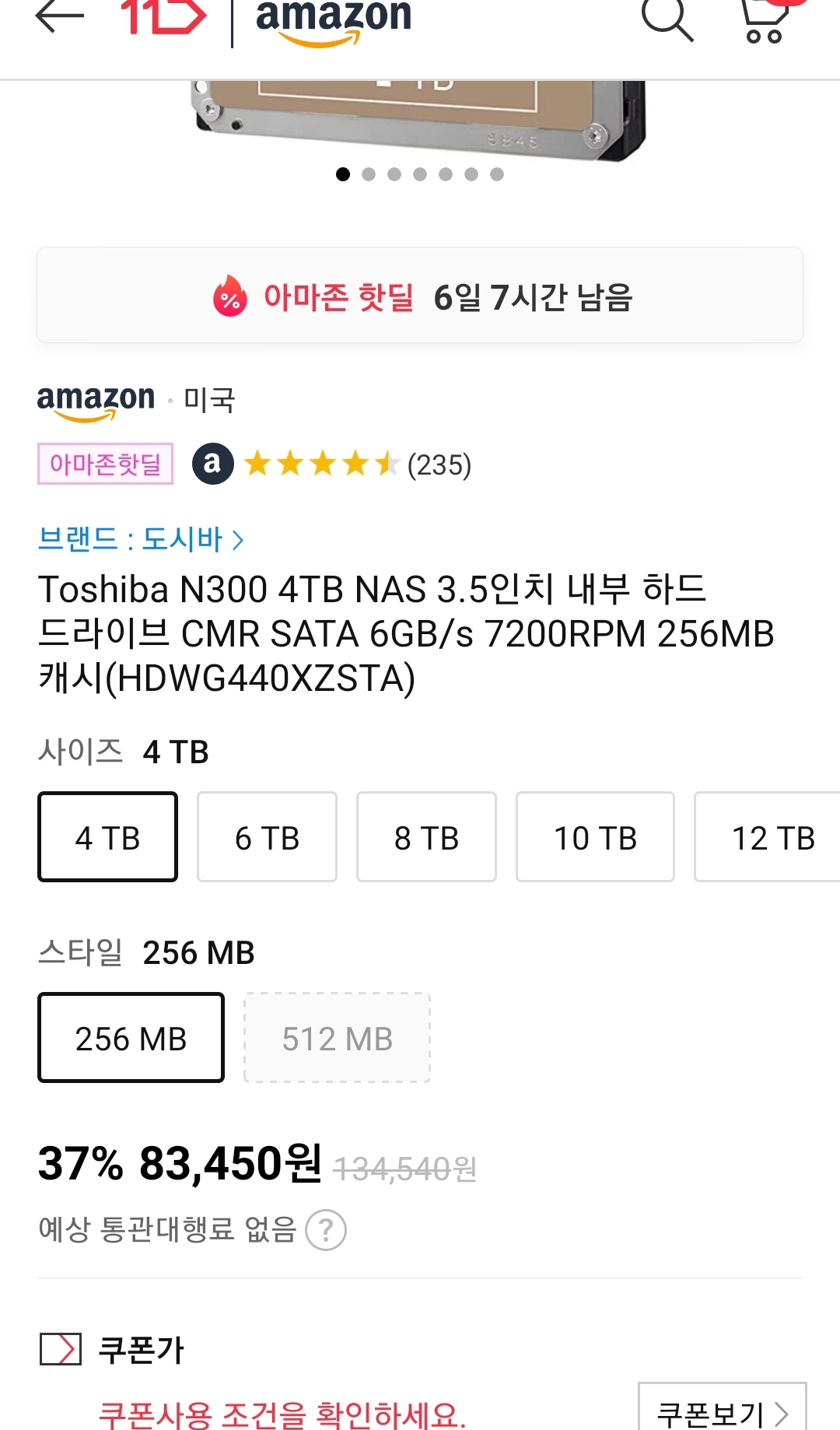 ※ 아마존을 모를 땐, 도시바 2테라 SMR 하드를 쇼핑몰 적립금과 할인을 적용해 5만원 내외에 사며 싸게 샀다고 생각했더랬는데요. ㅎㅎ 11번가에서 오픈하기 바로 계절 하나 전이었죠.