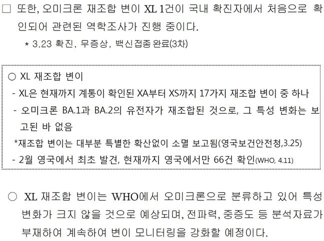 XE변이는 아직 국내에서 보고되지 않았고, 주시 중.