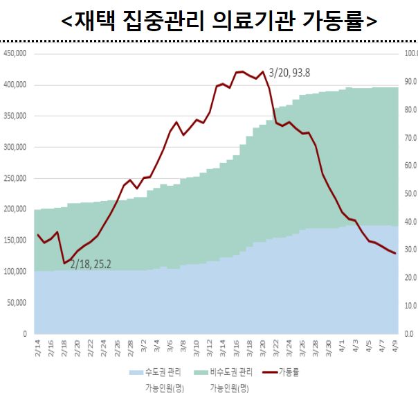 * 재택 집중관리 의료기관 가동률: (3.5주) 54.4% → (4.1주) 33.3%(-21.1%p)