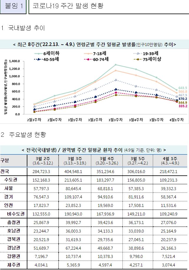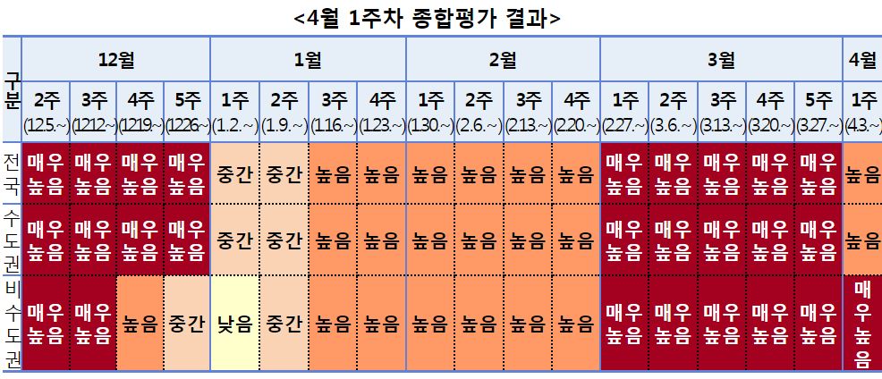 코로나19(2022.4.12) 주간 발생 동향 및 위험도 평가: 높음/매우높음 본문