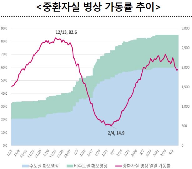 * 주간 입원환자 수: (3월 4주) 12,542명 → (3월 5주) 11,775명 → (4월 1주) 10,080명