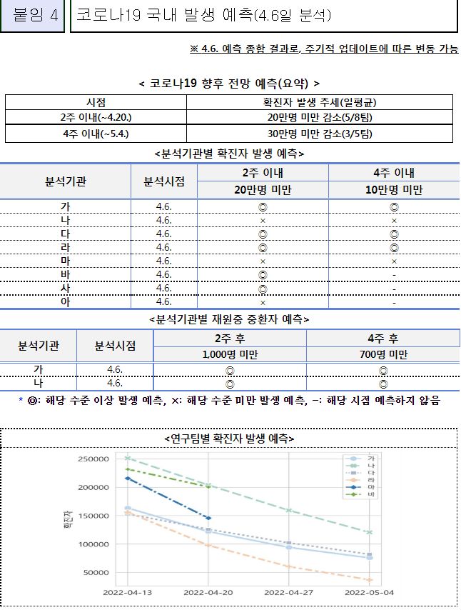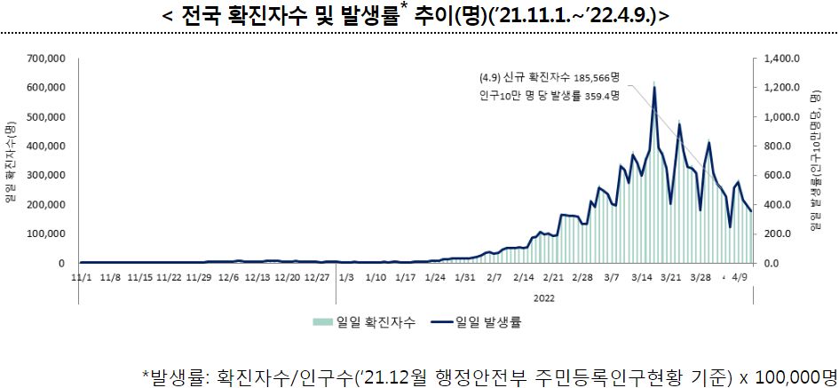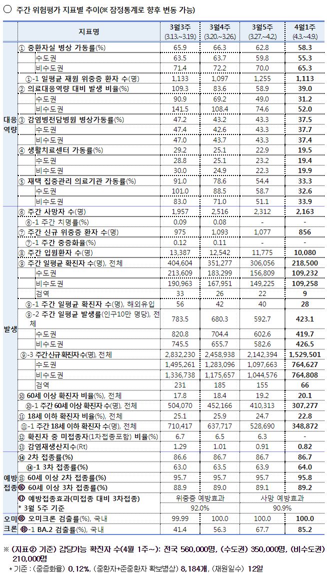* 재택치료 집중관리 의료기관 수: (4월 2일) 1,158개 → (4월 9일) 1,165개