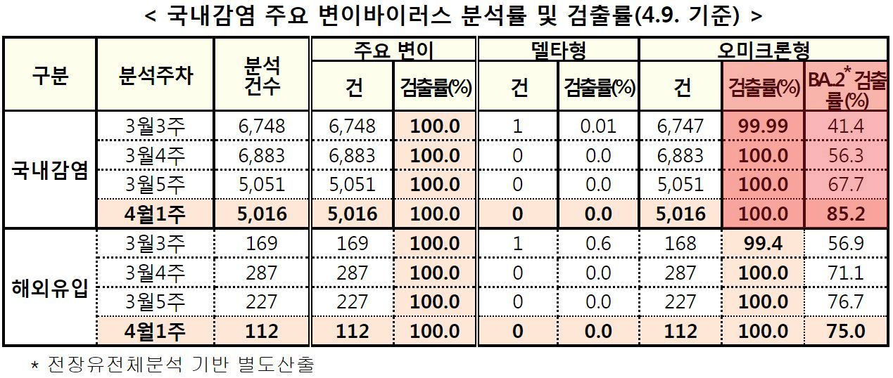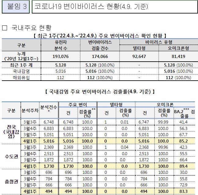 최근 표본조사결과 전부 다 오미크론이고, 그 오미크론 중에서도 스텔스오미크론(BA2)가 대부분.