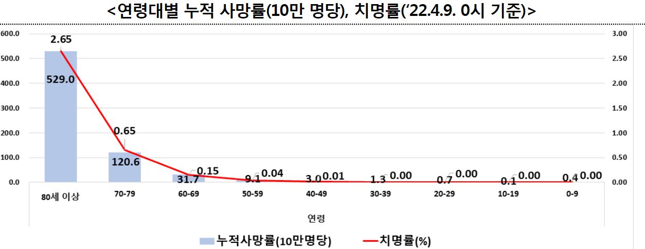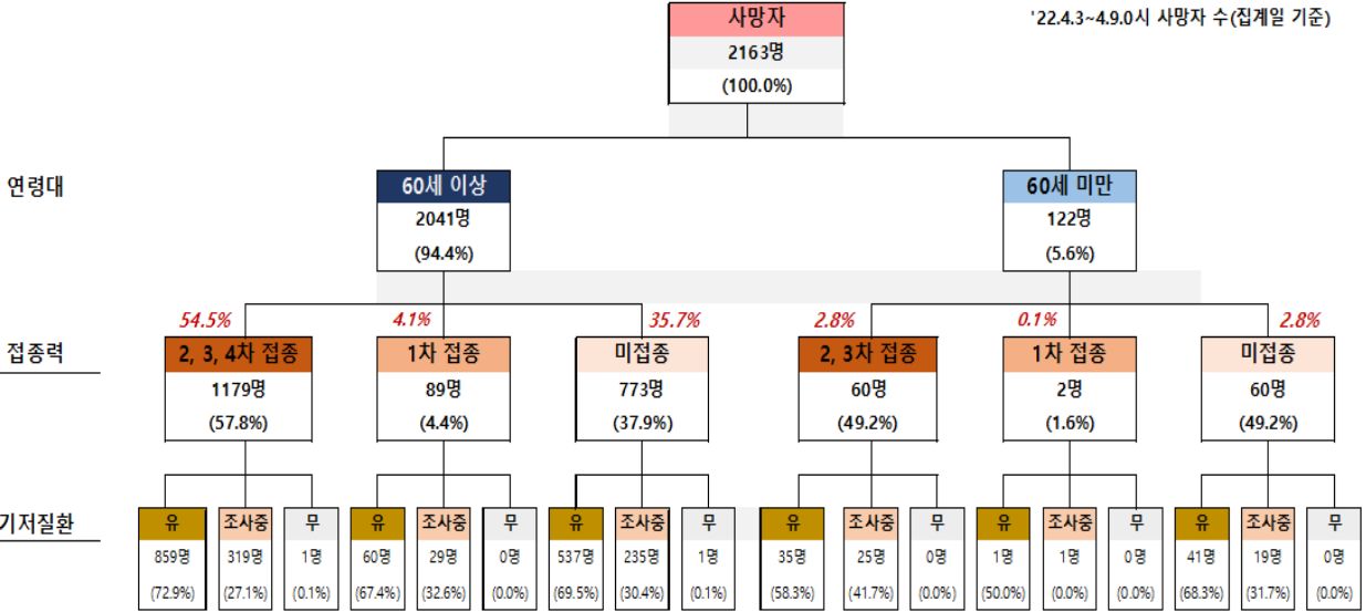최근 1주간 사망자의 치명률 기여 요인: 고연령층, 미접종, 기저질환