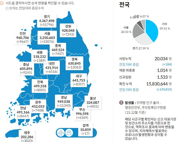 공식집계 누적확진자는 내일이란 모레쯤 1600만 명을 넘을 것 같습니다.