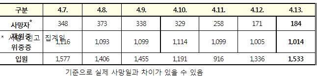 사망자도 천천히 줄고 있습니다. 200명 아래로 . 다행이네요.