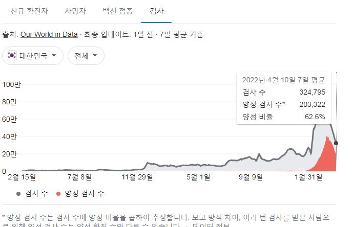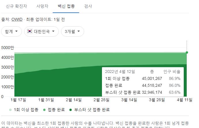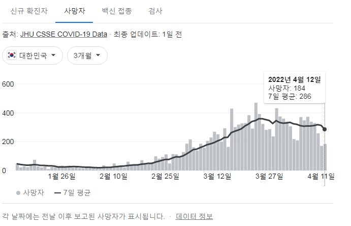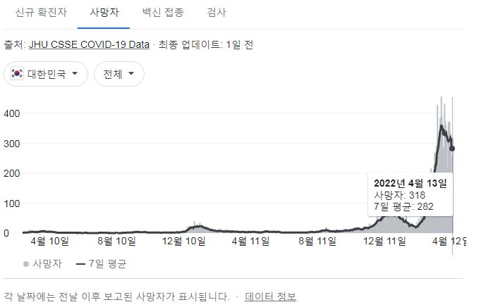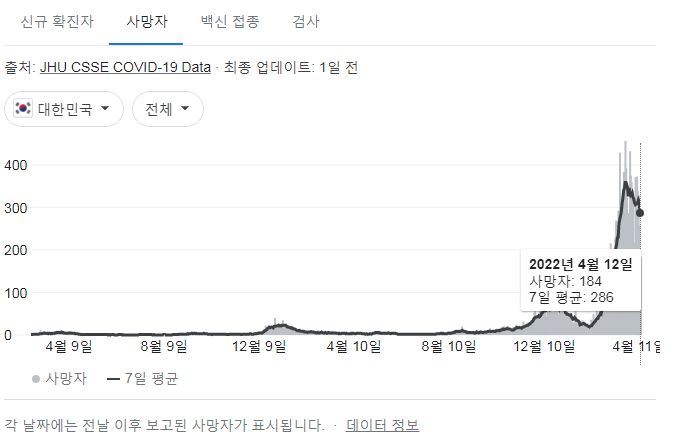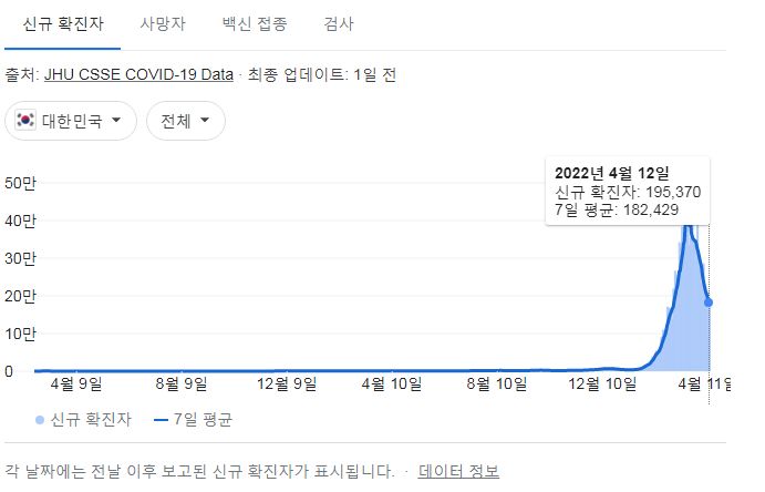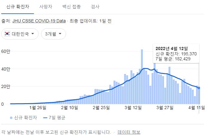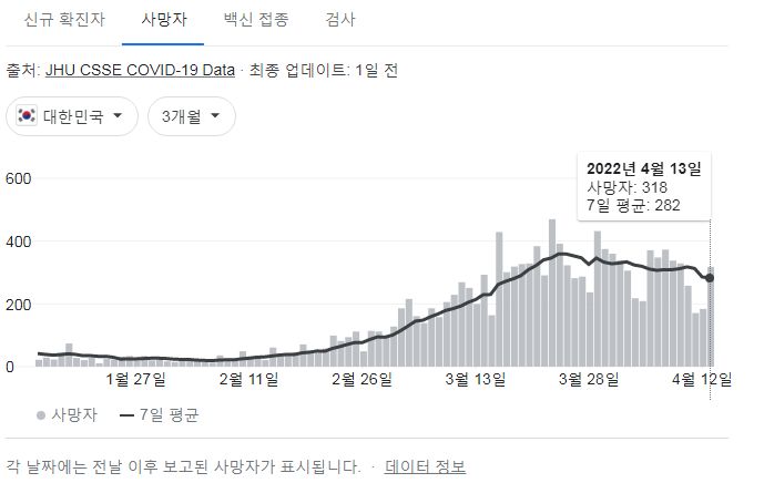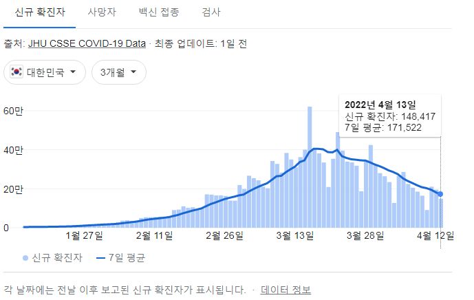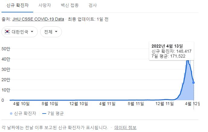 구글그래프 2022.4.13일분(질병관리청 보도자료 4월 14일 0시기준 브리핑에 대응하는 것) 추가